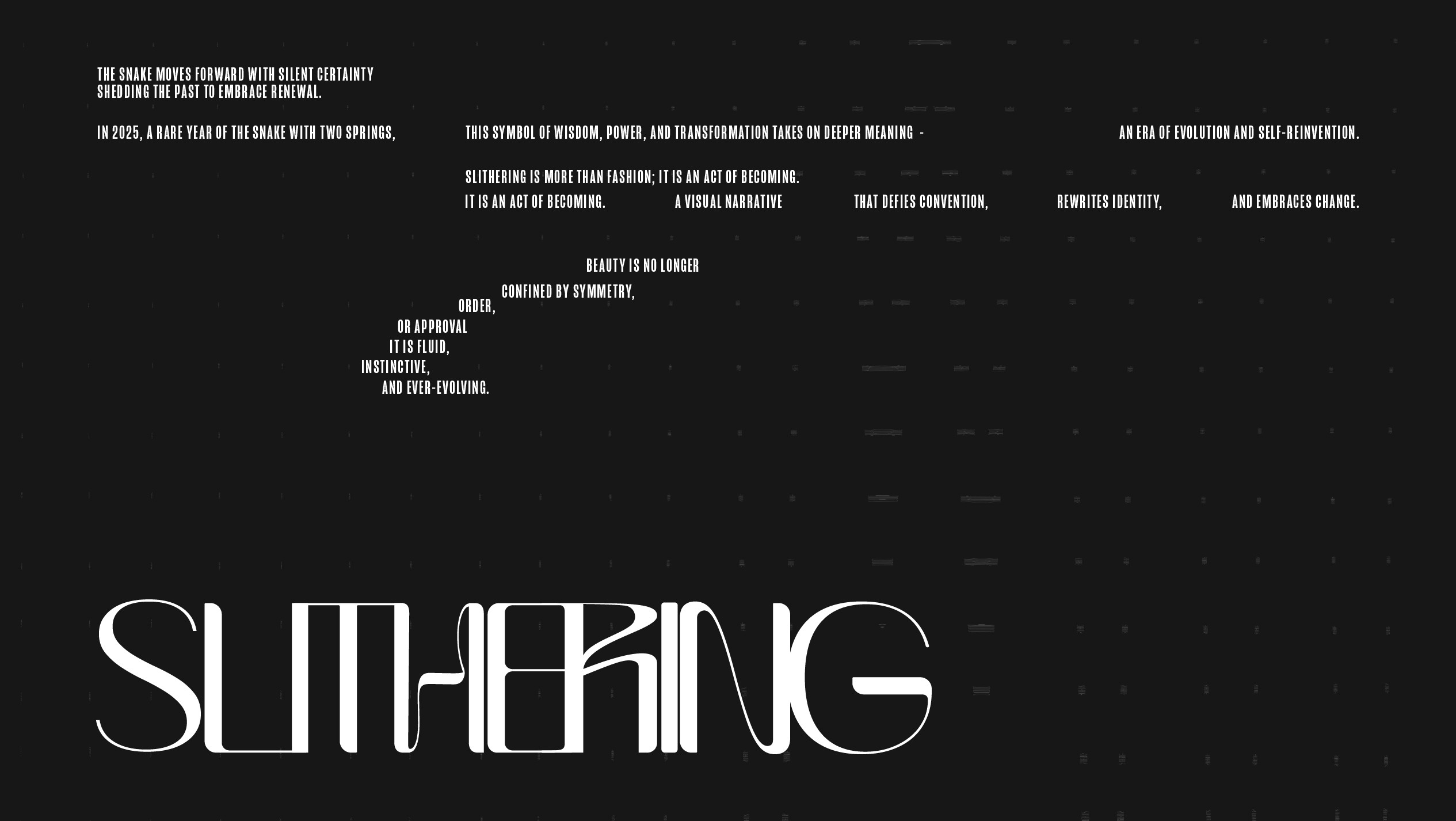 Inspired by the symbolism of the Year of the Snake, the project explores transformation, renewal, and identity as something always in motion - never fixed, never symmetrical.